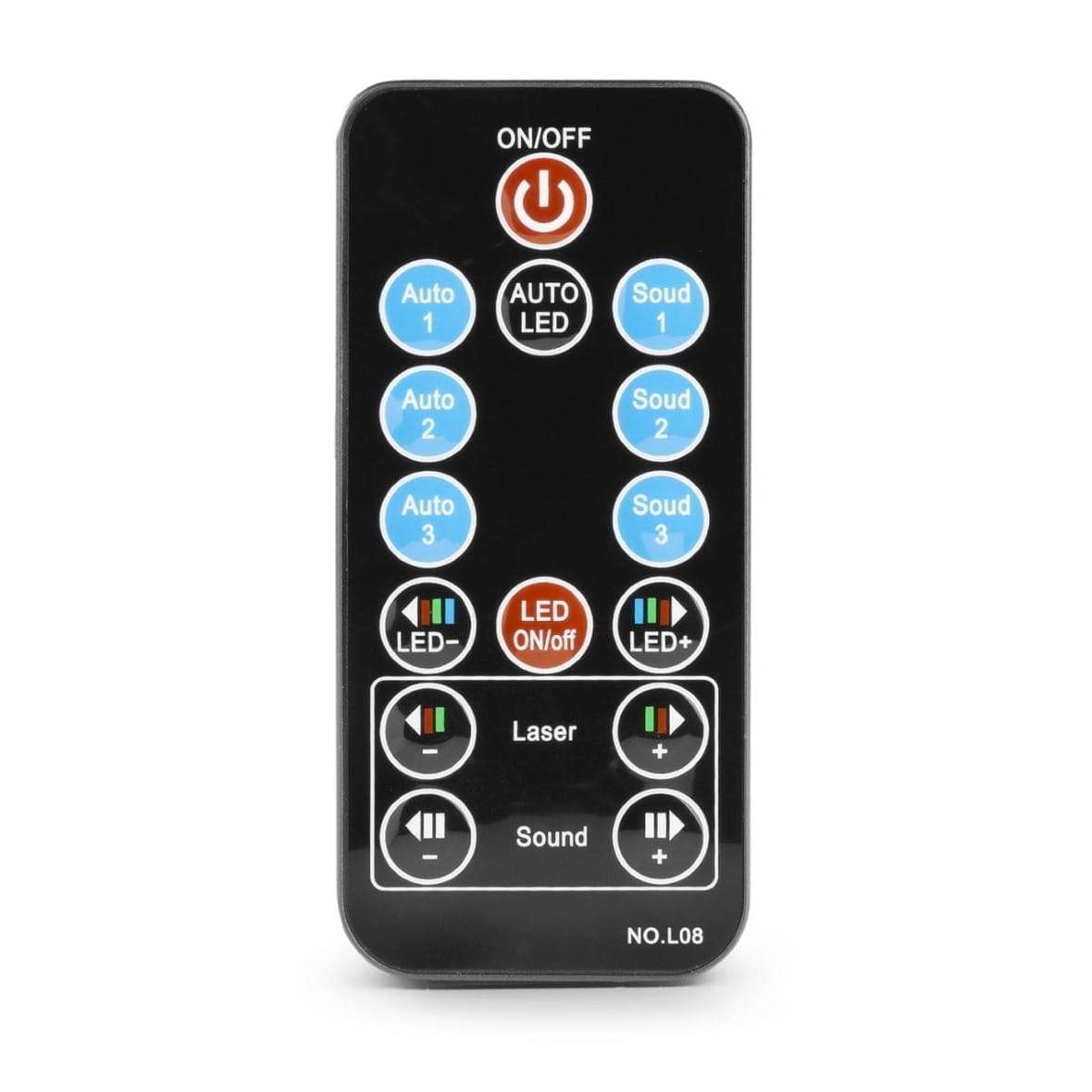 Urządzenie generuje dynamiczne wzory świetlne, które można łatwo zmieniać przy pomocy pilota. Dzięki wbudowanemu mikrofonowi, system może działać w trybie sterowania dźwiękiem, automatycznie dostosowując efekty świetlne do muzyki.