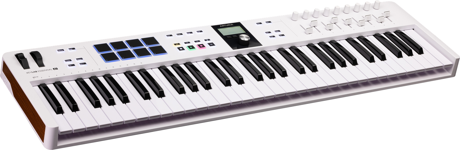 Niezależnie od tego, czy jesteś początkującym producentem, czy doświadczonym twórcą muzycznym szukającym odświeżonej konfiguracji, KeyLab Essential łączy w sobie wszystko, czego możesz oczekiwać od kontrolera, w prostą, uniwersalną, intuicyjną i przystępną cenowo klawiaturę MIDI. Ciesz się wygodnymi klawiszami, licznymi elementami sterującymi zintegrowanymi z DAW i oprogramowaniem, a także przemyślanym układem, który po prostu ułatwia Twoje twórcze życie.