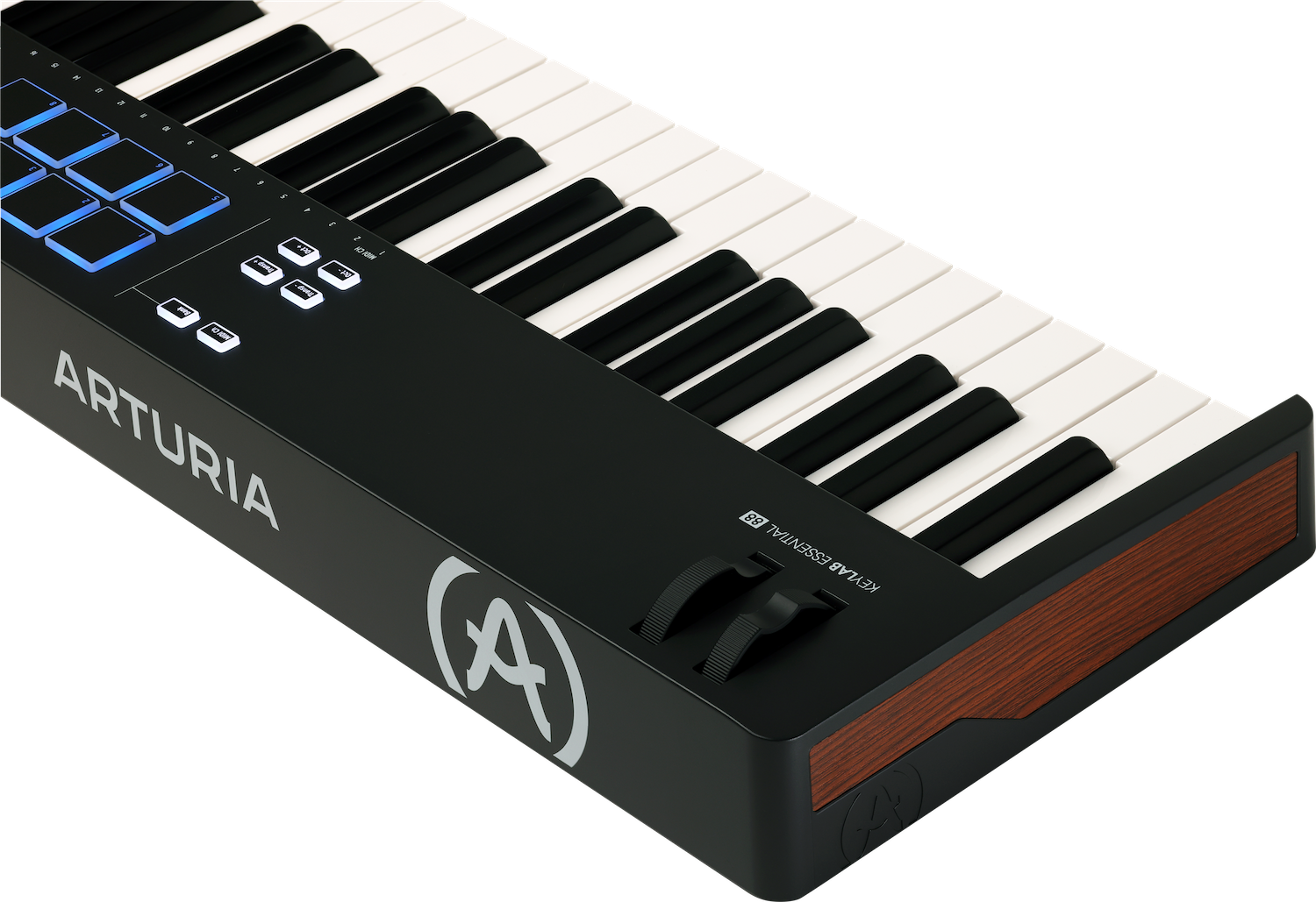 Wytrzymała hybrydowa klawiatura syntezatorowo-fortepianowa KeyLab Essential jest równie wygodna podczas występów, jak i tworzenia beatów w studiu. Jest płynna i responsywna, uzupełniona o koła Pitch & Mod oraz wejście na pedał sustain lub ekspresji.