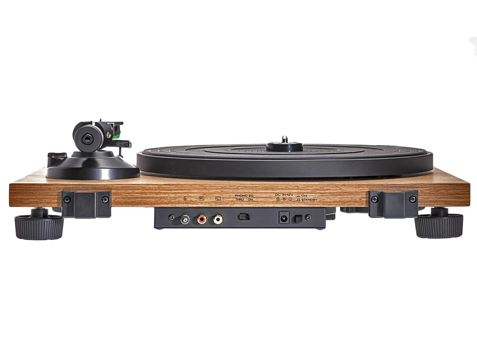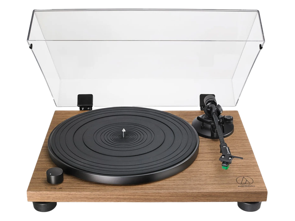 AT-LPW40WN to w pełni ręczny gramofon z napędem pasowym, zaprojektowany z myślą o zapewnieniu optymalnej jakości odtwarzania dźwięku z płyt winylowych. Wyposażony jest w estetyczną, antyrezonansową podstawę z płyty MDF (płyta pilśniowa średniej gęstości) z imitacją forniru z drewna orzechowego, która ogranicza sprzężenie akustyczne niskich częstotliwości, oraz silnik monitorowany czujnikiem, który zapewnia dokładną prędkość obrotową talerza przy 33-1/3 i 45 obr./min.