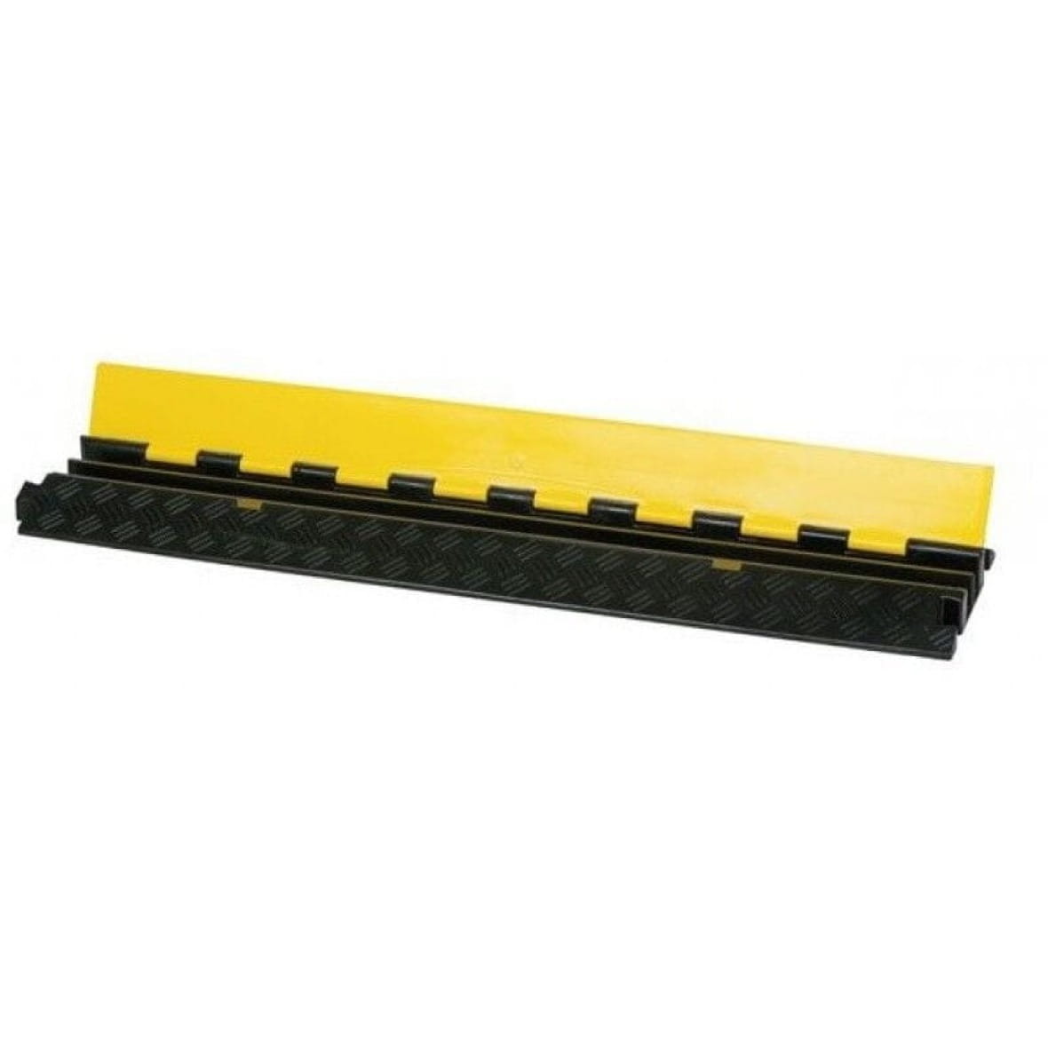 Najazd posiada dwa tunele przeznaczone do bezpiecznego prowadzenia przewodów, a jego górna osłona otwierana jednostronnie zapewnia szybki i wygodny dostęp do okablowania. Antypoślizgowa powierzchnia spodnia gwarantuje stabilność i pewne przyleganie do podłoża, eliminując ryzyko przesunięcia. Dzięki temu rozwiązaniu przewody pozostają zabezpieczone przed uszkodzeniami mechanicznymi.
