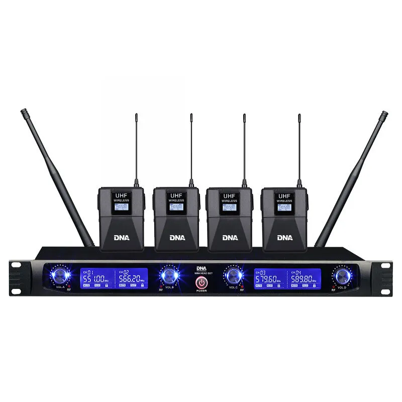 DNA WM4 HEAD SET to zaawansowany, bezprzewodowy system mikrofonowy, który obejmuje cztery dynamiczne mikrofony nagłowne z nadajnikami typu bodypack oraz kompaktową stację bazową z kolorowym wyświetlaczem LCD, pracującą w paśmie UHF. To idealne rozwiązanie dla wokalistów, zespołów muzycznych, chórów, firm eventowych, animatorów, instytucji kulturalnych i edukacyjnych, a także jako zestaw do karaoke.