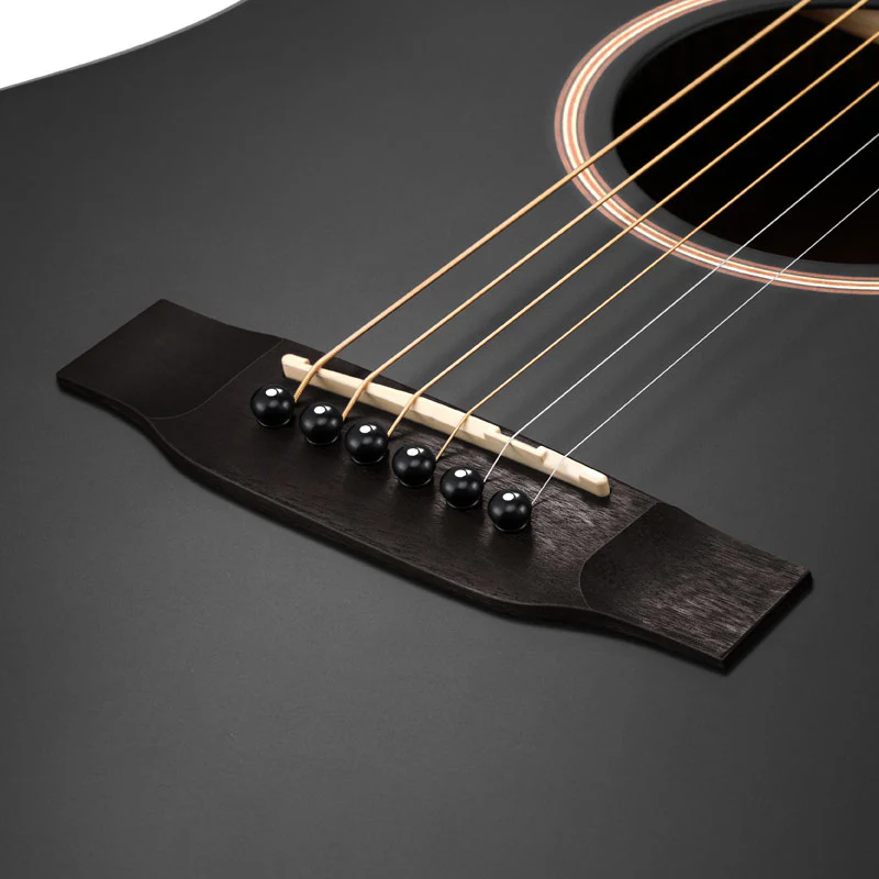 Donner DAG-1CB 41" Dreadnought Black to pełnowymiarowa gitara akustyczna zaprojektowana dla osób, które szukają instrumentu o pełnym, głośnym i zbalansowanym brzmieniu. Klasyczny korpus typu dreadnought zapewnia mocną projekcję dźwięku oraz głębokie niskie tony, dzięki czemu gitara doskonale sprawdza się podczas gry akordowej, fingerstyle oraz akompaniamentu wokalnego.