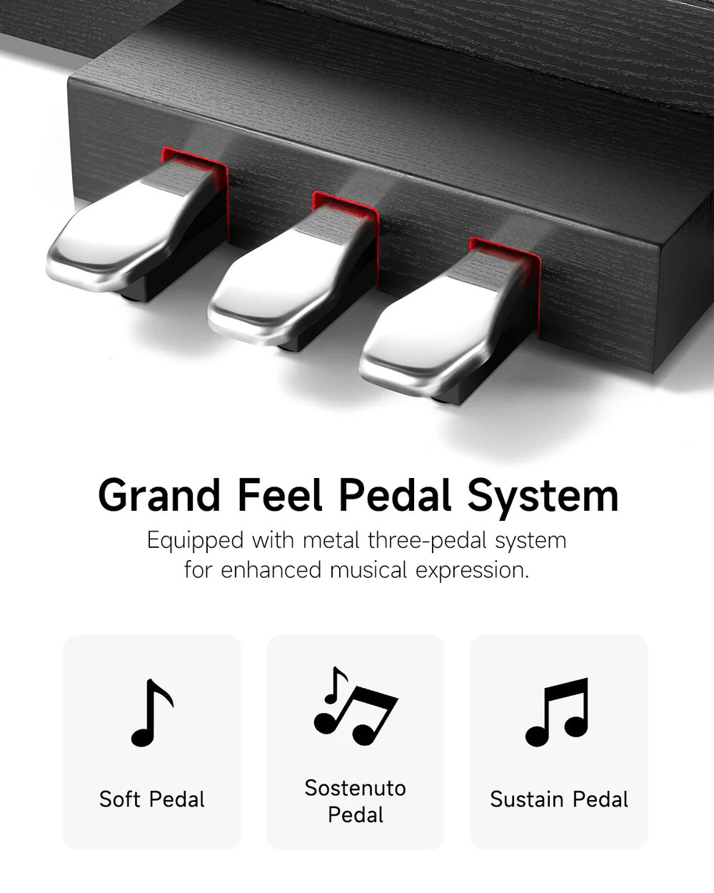 88-klawiszowa, graded hammer action klawiatura – naturalny dotyk klawiszy, realistyczne wrażenia gry.