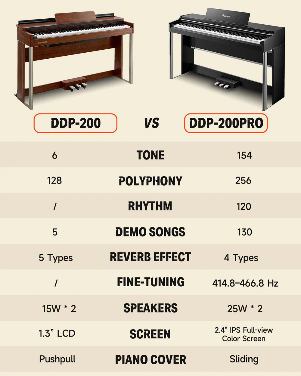 Donner DDP‑200 Pro Black EC7051 to nowoczesne cyfrowe pianino 88 klawiszy dla początkujących i zaawansowanych graczy. Wyposażone w progresywną młoteczkową klawiaturę (graded hammer action) zapewnia realistyczne wrażenia gry zbliżone do fortepianu akustycznego. Dzięki 256 nut polifonii, 138 brzmieniom, 120 rytmom i 130 utworom demo, instrument oferuje ogromne możliwości twórcze i edukacyjne.