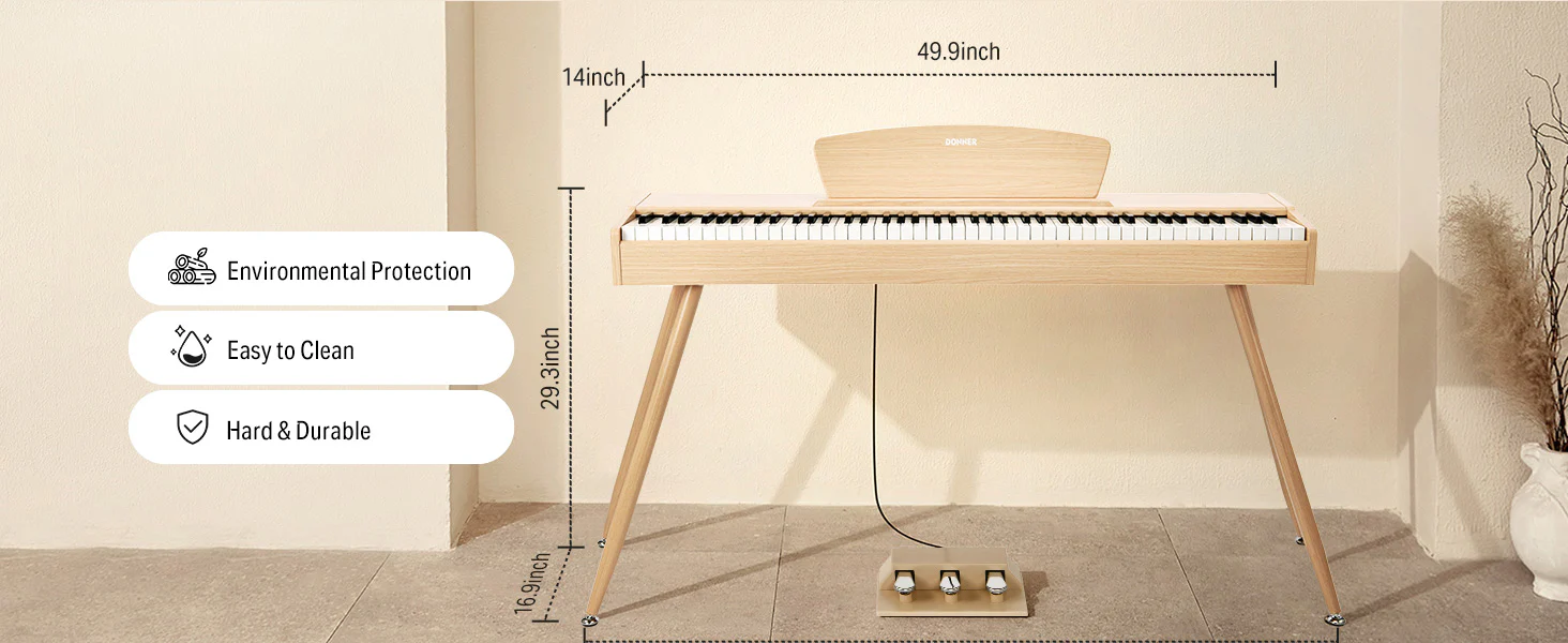 DDP-80 to nie tylko pianino – to część Twojego codziennego życia. Nie wymaga precyzyjnego strojenia ani skomplikowanych ustawień. Podłącz je do gniazdka i gotowe do gry. Dzięki eleganckiemu, drewnianemu wykończeniu staje się również pięknym elementem wystroju.
