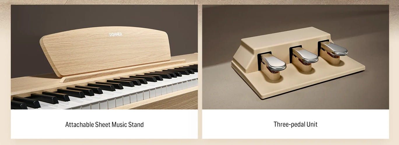 Nie idź na kompromisy przy swoim pierwszym pianinie elektrycznym! Donner DDP-80 łączy stylowy design, fantastyczne brzmienie i autentyczne wrażenia z gry – wszystko to zamknięte w kompaktowej i minimalistycznej obudowie, która zmieści się w każdym domu.
