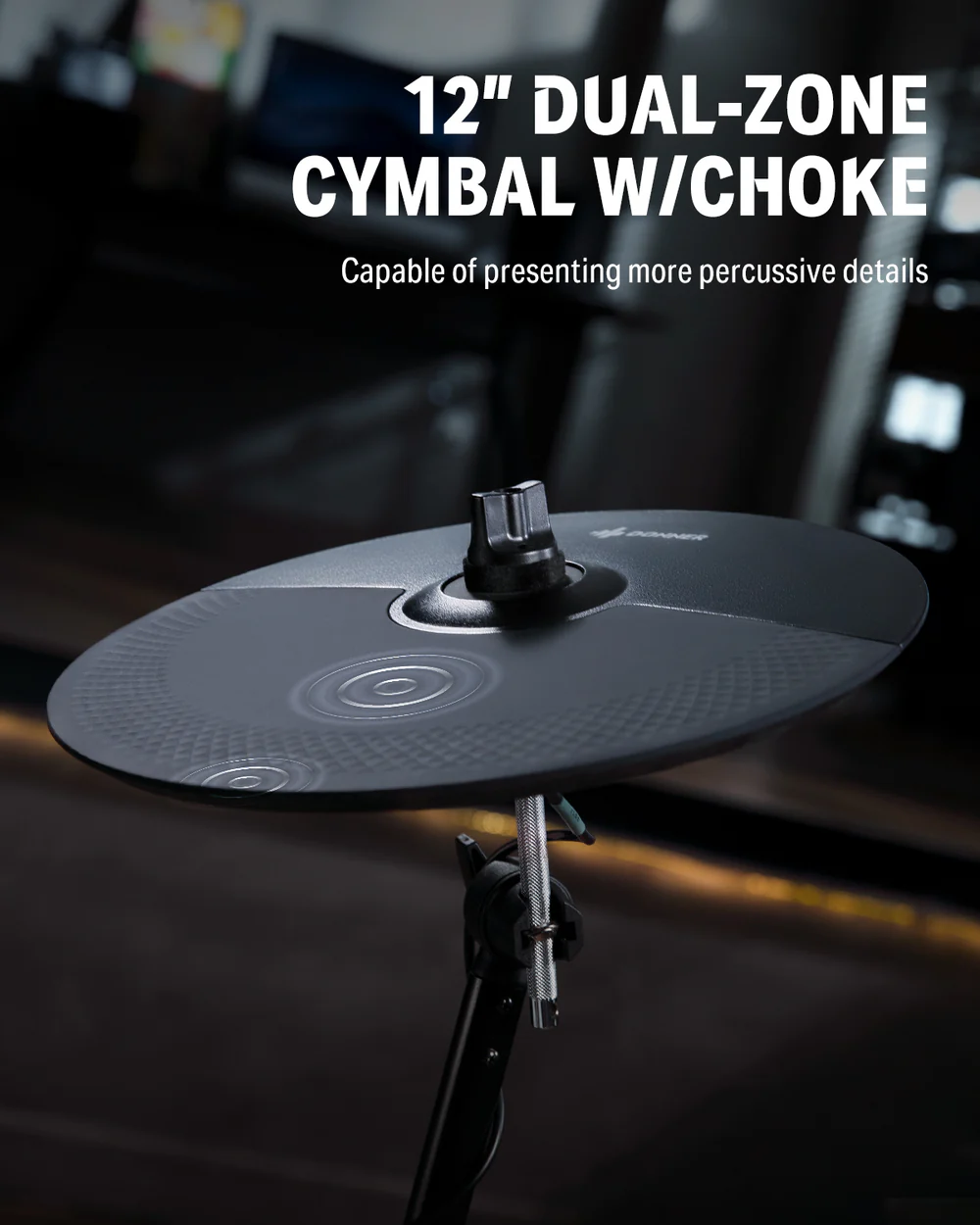 DED200 Max pozwala cieszyć się pełnym doświadczeniem perkusyjnym w wersji elektronicznej, umożliwia naukę techniki gry i ćwiczenie rytmu w każdym wieku, z możliwością natychmiastowego podłączenia do urządzeń cyfrowych.