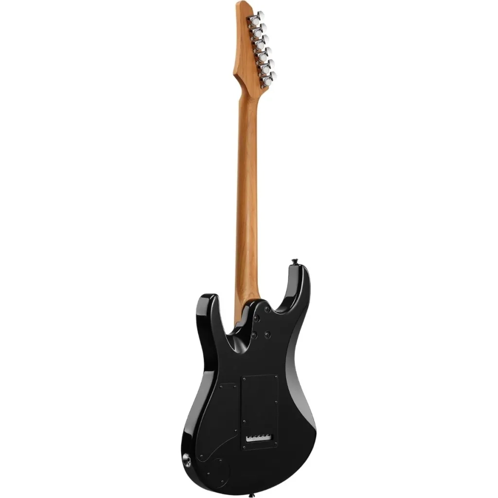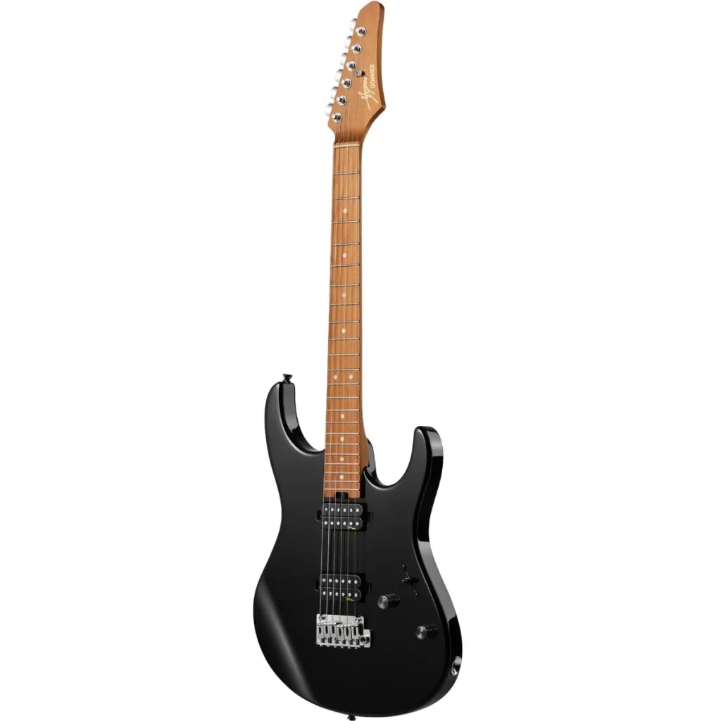 Korpus z basswood zapewnia lekką, rezonującą konstrukcję, a czarne satynowe wykończenie nadaje gitarze elegancki, nowoczesny wygląd.