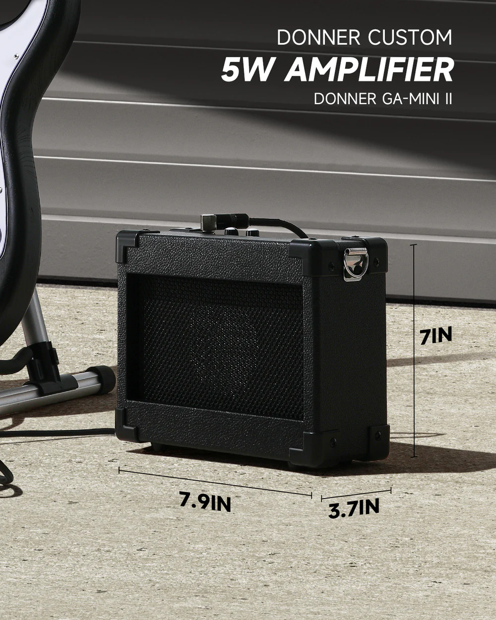 Kompaktowy wzmacniacz z regulacją Gain i Tone umożliwia grę w domu, na próbie czy u znajomych. Otrzymujesz zarówno czyste brzmienie, jak i lekki przester.
