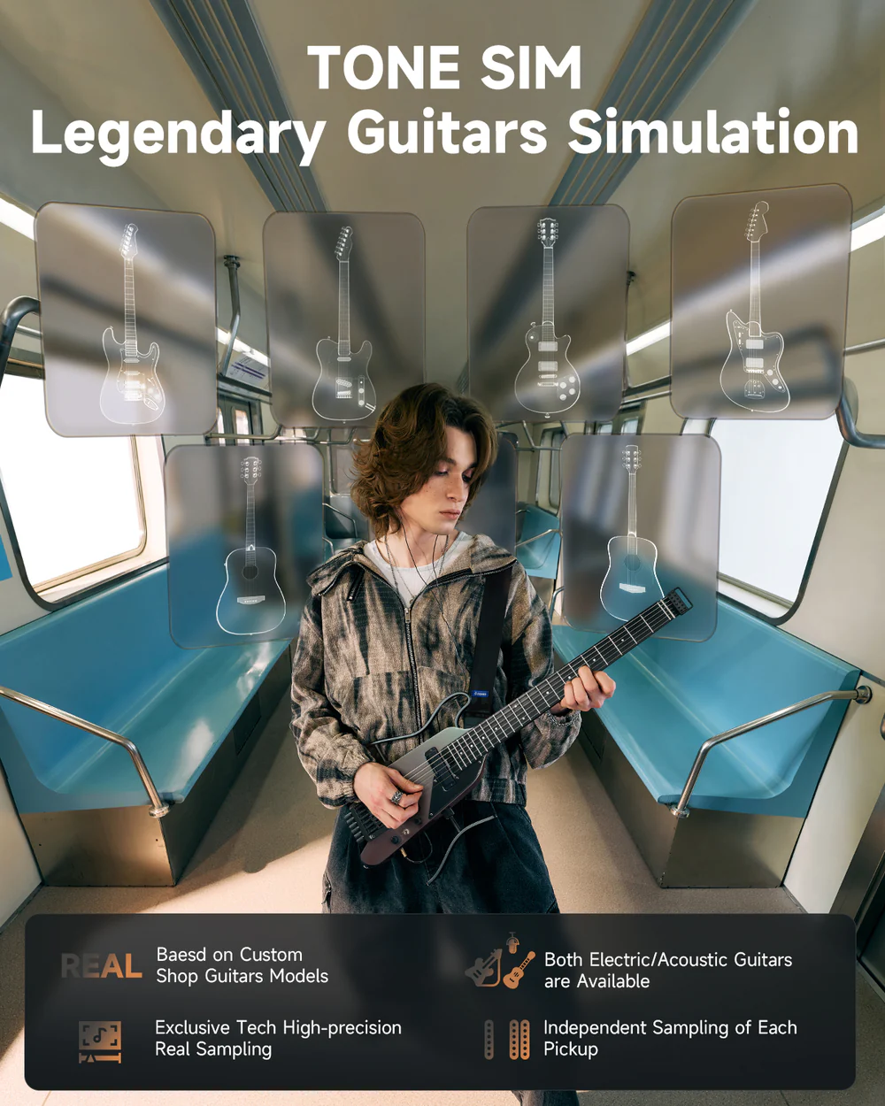 Donner HUSH-X PRO to lekka gitara elektryczna do podróży, pełna skala 25,5”, profesjonalne brzmienie i maksymalna wygoda w jednym instrumencie.