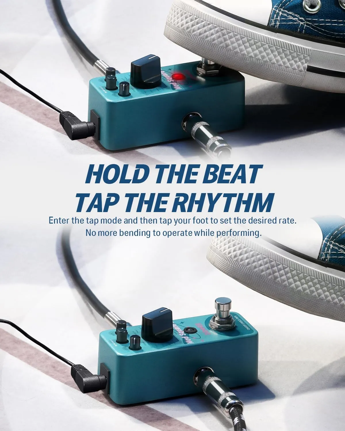 Pokrętła sterujące umożliwiają szybkie dopasowanie charakteru efektu do Twojego stylu gry – od delikatnej modulacji po mocne, dynamiczne brzmienie.