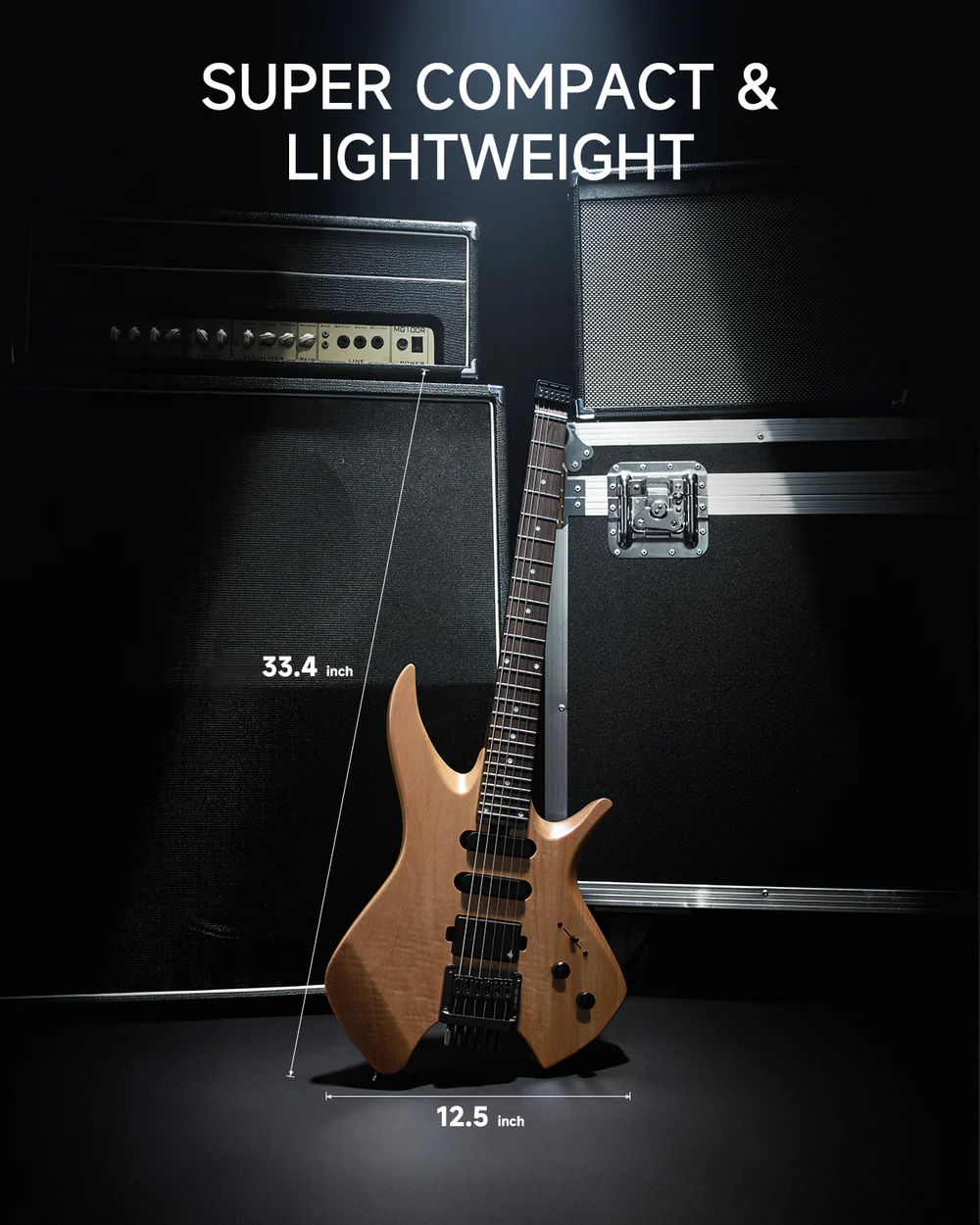 Headless konstrukcja redukuje wagę i ułatwia transport, bez utraty komfortu gry. Idealna dla muzyków w podróży i podczas występów na żywo.