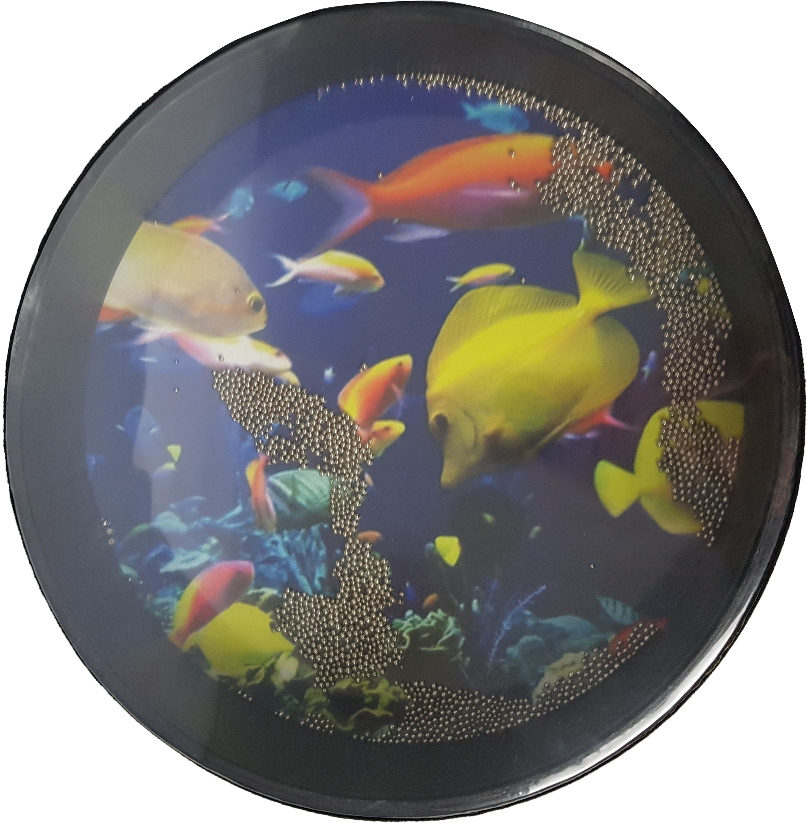 - Na dnie obraz morskich głębin, co sprawia wrażenie, małego domowego akwarium