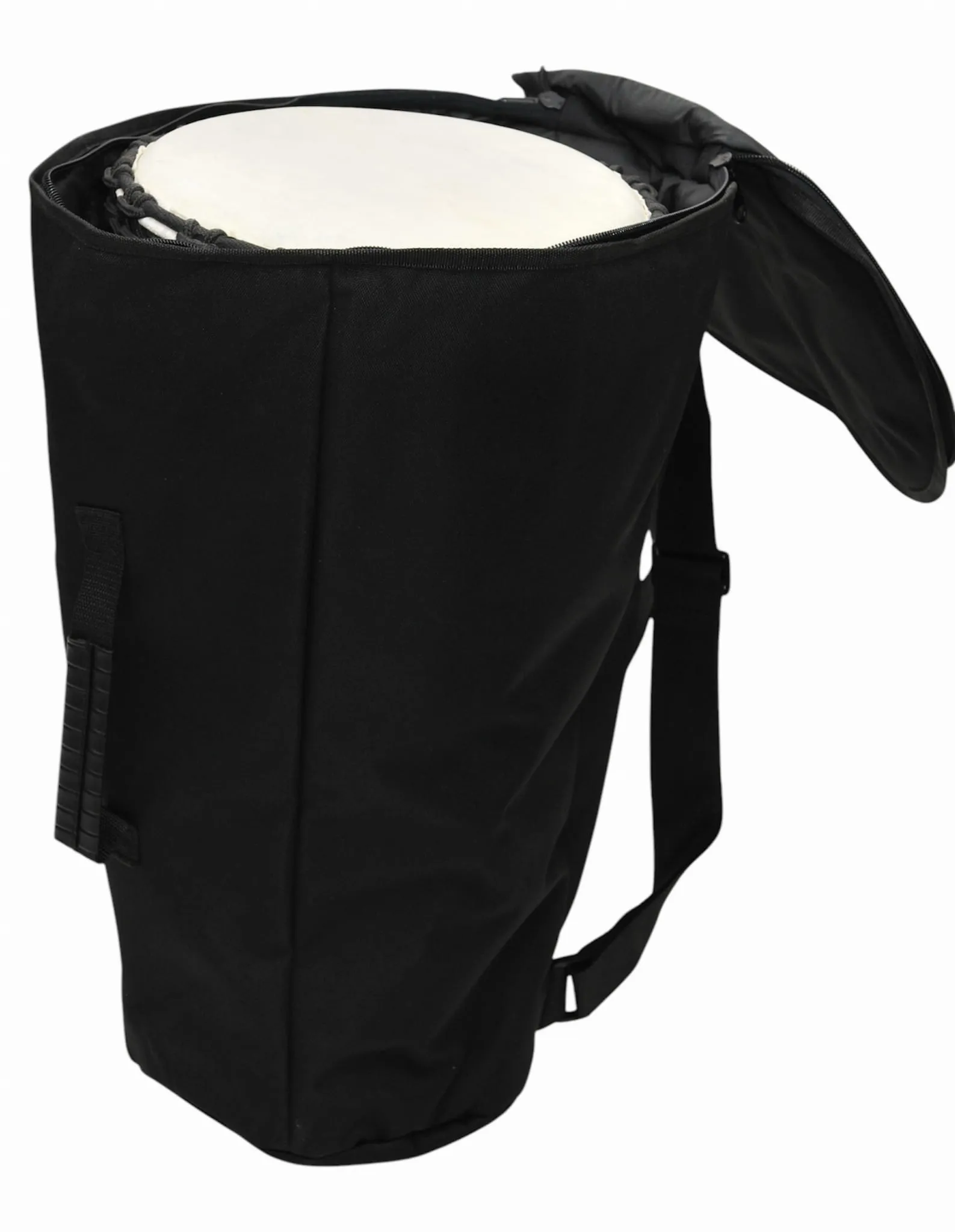Dzięki dopasowanej konstrukcji idealnie przylega do korpusu djembe, zapewniając stabilność podczas przenoszenia. Pokrowiec wyposażono w praktyczne uchwyty oraz regulowany pasek na ramię, co znacząco ułatwia transport i przechowywanie instrumentu – zarówno w drodze na próbę, jak i podczas podróży.