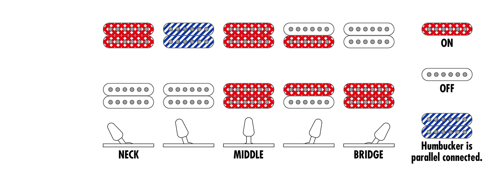 - Regulacje, przełącznik przetworników 1 Volume, 1 Tone, 5-pozycyjny przełącznik dźwigniowy