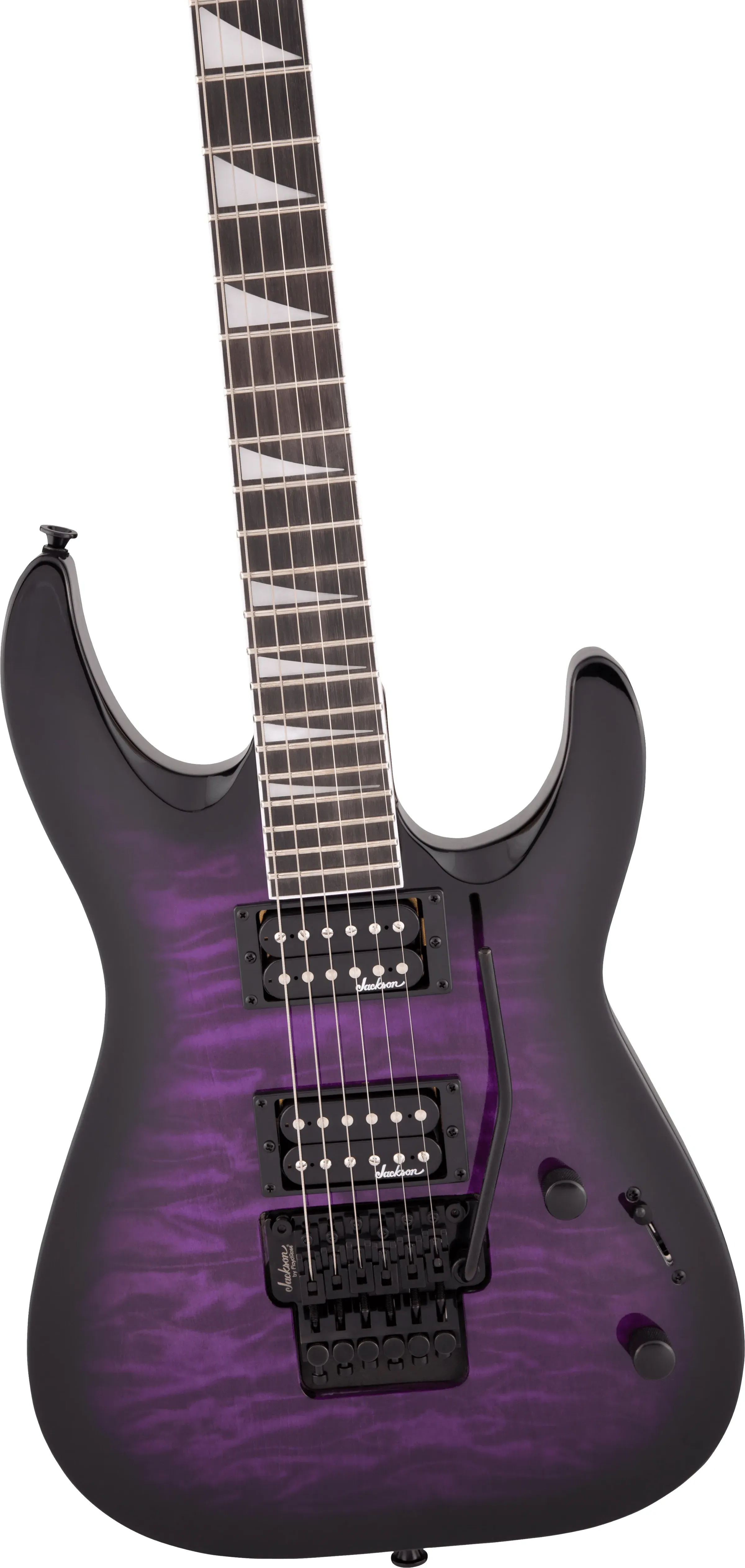 Model JS32Q DKA, wyposażony w podwójne humbuckery Jackson o wysokiej mocy z magnesami ceramicznymi, montowane bezpośrednio, posiada również trzypozycyjny przełącznik, pojedyncze regulatory głośności i tonu, licencjonowany most tremolo Floyd Rose® z podwójną blokadą marki Jackson, standardowe przyciski do paska oraz zamknięte, odlewane stroiki.