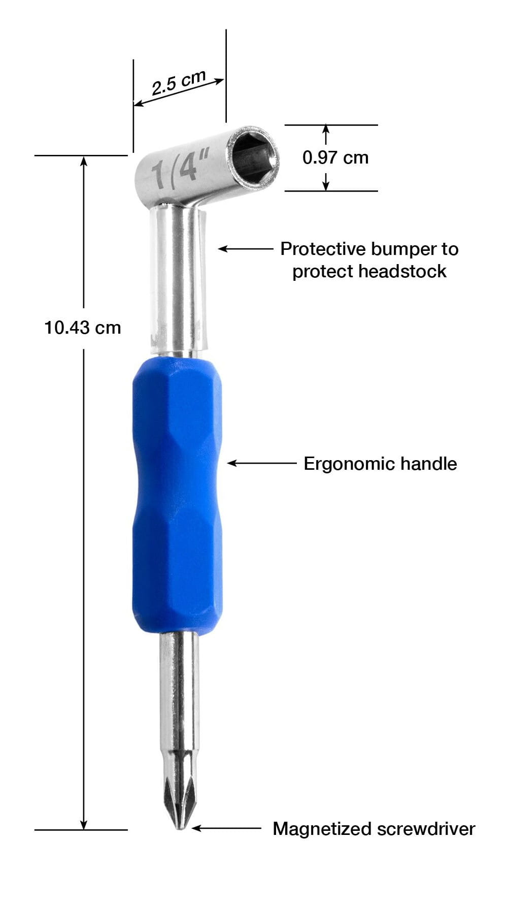 Posiadanie odpowiedniego narzędzia do wykonywania kluczowych regulacji przekładni ma niebagatelne znaczenie. Od wierzchołka do końca, profesjonalny klucz prętowy Music Nomad jest wyposażony w szereg funkcji i zalet. Konstrukcja ze stali węglowej zapewnia wysoką jakość, a ergonomiczny uchwyt wygodę i łatwość użytkowania. Gumowy ochraniacz zapobiega zakleszczaniu metalowego uchwytu w otworze pręta kratownicowego. Zaprojektowaliśmy nawet namagnesowany śrubokręt dla małych śrub znalezionych na pokrywie pręta. Wszystko po to, by zwiększyć jakość i wygodę użytkowania.