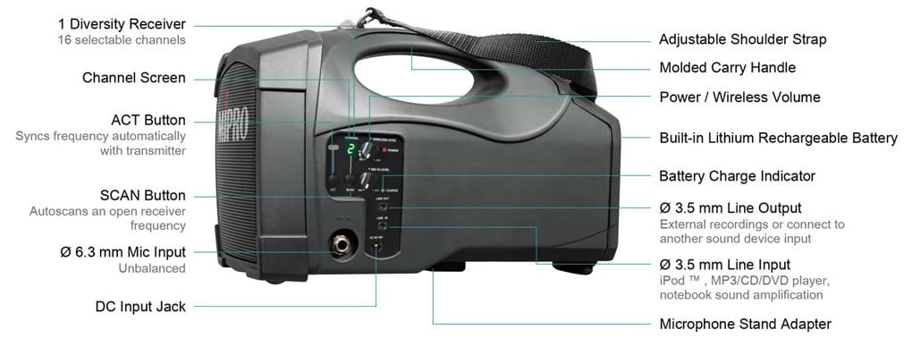 Sprawdzi się podczas nagłośnienia, wycieczek dla przewodników, lekcji, niewielkich konferencji, wykładów szkoleń, spotkań informacyjnych oraz ceremonii pogrzebowych.
