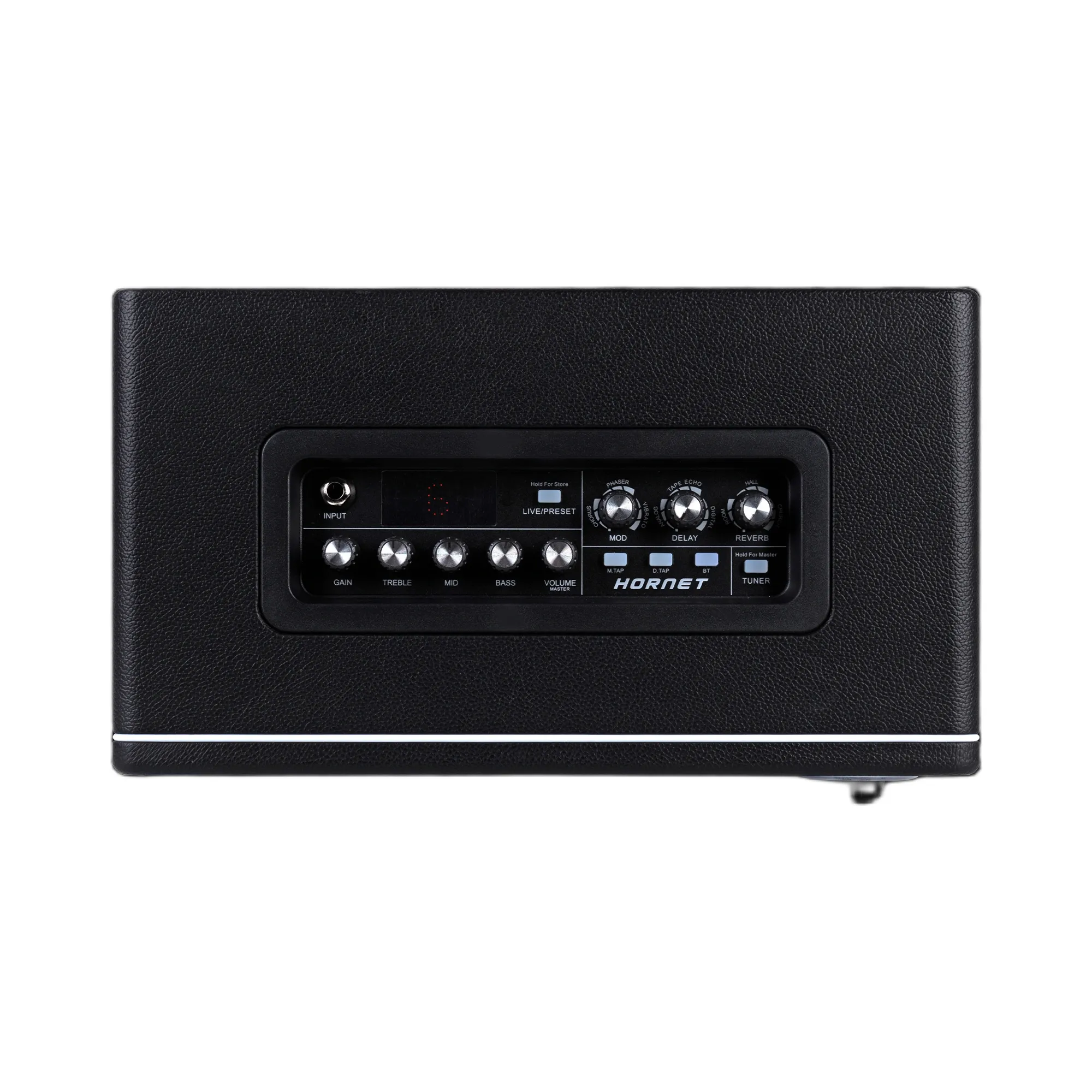 Mooer Hornet Black 30W to kompaktowe kombo o nowoczesnym wyglądzie oraz intuicyjnej kontroli. Wyposażone w 9 wysokiej jakości cyfrowych symulacji wzmacniaczy dla gitary elektrycznej, oferuje także 3 efekty modulacji, efekty delay i reverb oraz 2 tryby działania. Urządzenie dysponuje mocą 30W, 8-calowym głośnikiem, 9 presetami użytkownika, gniazdem AUX input, bezprzewodową łącznością Bluetooth oraz gniazdem słuchawkowym. Hornet Black 30W to idealne rozwiązanie do ćwiczeń w domu i na małe próby. Kompaktowy, lekki i mobilny – doskonały towarzysz w każdej podróży.