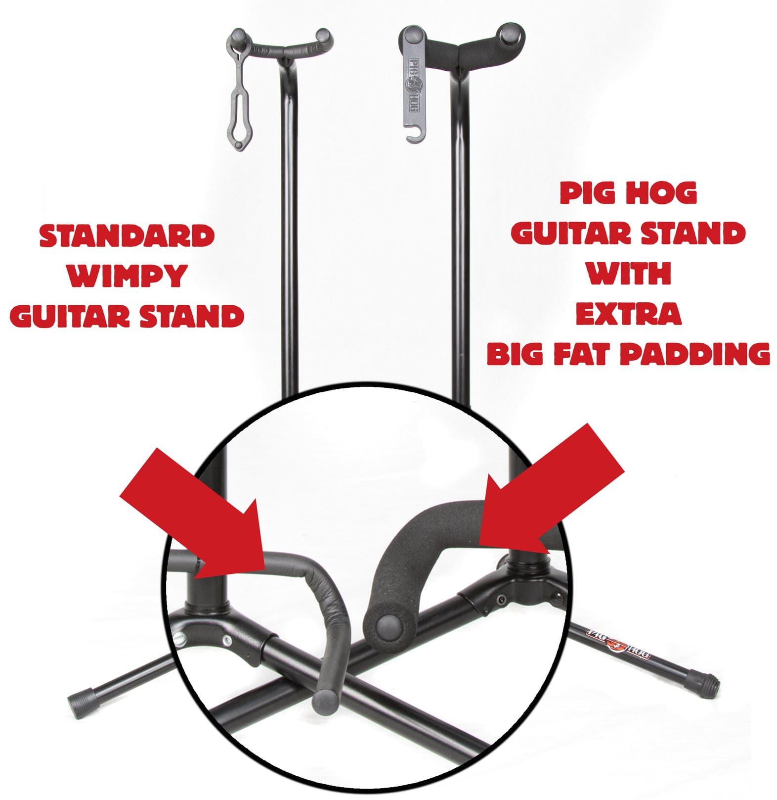 Mocna konstrukcja sprawia że, statyw jest bardzo wytrzymały. Dodatkowo wszystkie punkty kontaktowe wykończone są niereaktywną pianką, która jest bezpieczna dla większości lakierów i wykończeń. Dzięki regulacji wysokości można łatwo dostosować wielkość do różnych rodzajów gitar. Solidny pasek ryglujący zabezpiecza gryf gitary i przytrzymuje ją do stojaka, pozostając łatwym w obsłudze jedną ręką. Solidna stalowa podstawa statywu wyposażona w gumowe nóżki zapewnia równowagę i stabilność podczas przechowywania lub transportu. Na produkt przeznaczona jest dożywotnia gwarancja.