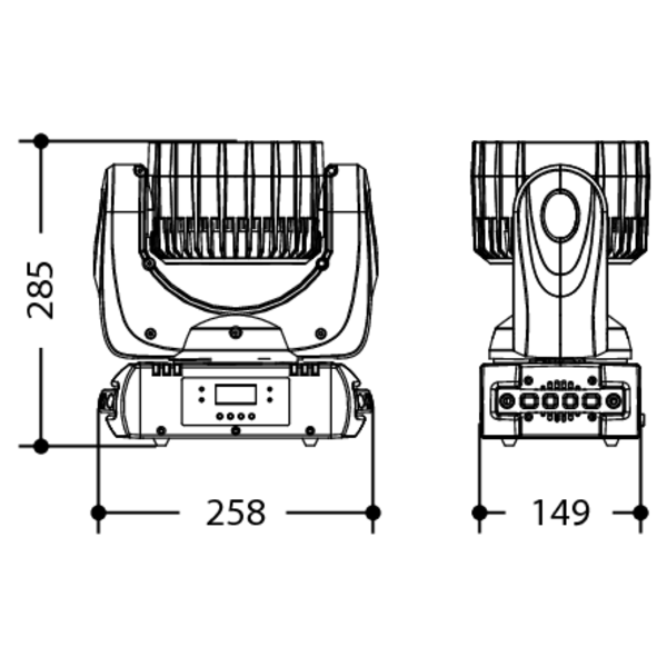 ElfinFC to innowacyjna ruchoma głowa LED. Źródło światła to 12 diod o mocy 10W każda, system mieszania kolorów RGBW pozwala na odwzorowanie pełnego zakresu barw i światła białego. Zaprojektowana aby uzyskać efekty wash i beam.