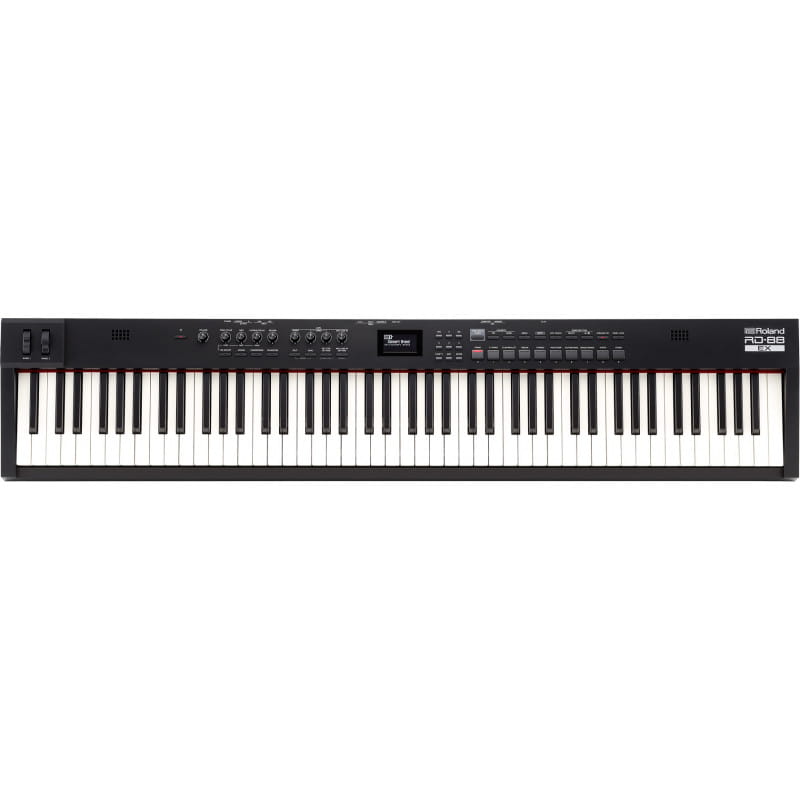 Roland RD-88 EX to instrument z cenionej rodziny pianin estradowych serii RD. Jest to rozszerzona wersja RD-88 z dodatkiem SuperNATURAL Acoustic Piano 3. Istotą projektu było zachowanie atrybutów brzmieniowych i funkcji instrumentów klasy premium wraz z ich grywalnością przy niskiej wadze instrumentu (13,5 kg) oraz bardziej przystępnej cenie niż RD-2000 (EX). Instrument wyposażono w doskonałą klawiaturę PHA-4, nowo opracowane brzmienia (w tym pianina) oraz inne brzmienia potrzebne na estradzie (zarówno syntetyczne, jak i akustyczne), napędzane najnowszym silnikiem brzmieniowym Zen-Core. Ciekawostką jest umieszczenie przez producenta głośników (z możliwością wyłączenia) do monitorowania pracy. Całości dopełnia intuicyjny i prosty w obsłudze panel. W wersji EX producent dołączył do instrumentu profesjonalny pedał sustain DP-10.