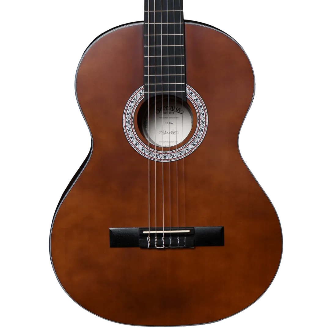 Santana Classical 18 BW to pełnowymiarowa gitara klasyczna. Gitara posiada laminowany top ze świerku oraz laminowany tył i boki z mahoniu. Świerk zapewnia czystość, blask i dynamikę brzmienia, podczas gdy mahoń na spodzie i bokach dodaje nieco ciepła i równowagi brzmieniu gitary, jednocześnie wzmacniając jej odporność na wahania temperatury i wilgotności. Santana Classical 18 BW jest szczególnie odpowiednia dla początkujących gitarzystów, którzy szukają łatwej w grze i dobrze brzmiącej gitary hiszpańskiej, z której będą mogli cieszyć się przez wiele lat.