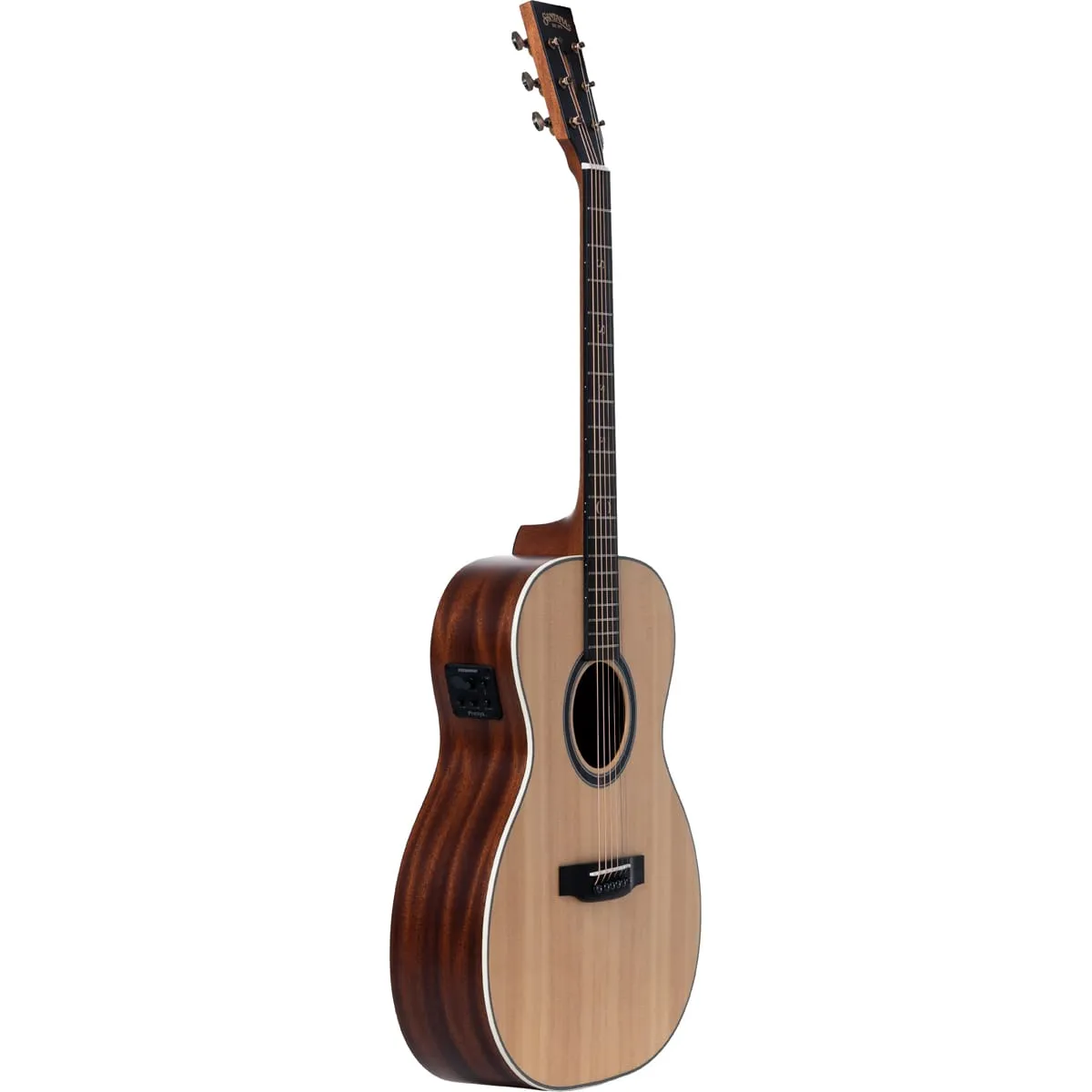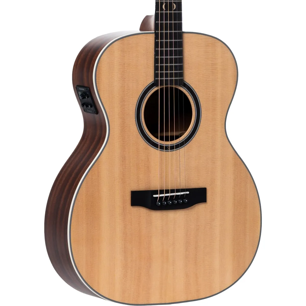 Kształt korpusu OM znany jest ze swojej wszechstronności, oferując zrównoważone brzmienie z wyraźnymi wysokimi tonami, pełnym środkiem i rezonującym basem, dzięki czemu nadaje się zarówno do gry palcami, jak i do strumieniowania. Kompaktowy rozmiar gitary zapewnia komfort nawet podczas długich sesji gry.