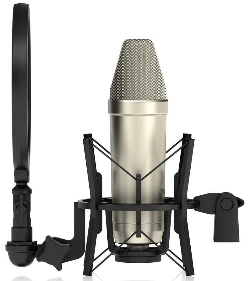- Mikrofon pojemnościowy w zestawie z koszykiem ze zintegrowanym pop-filtrem, 6m kablem mikrofonowym oraz dedykowanym pokrowcem