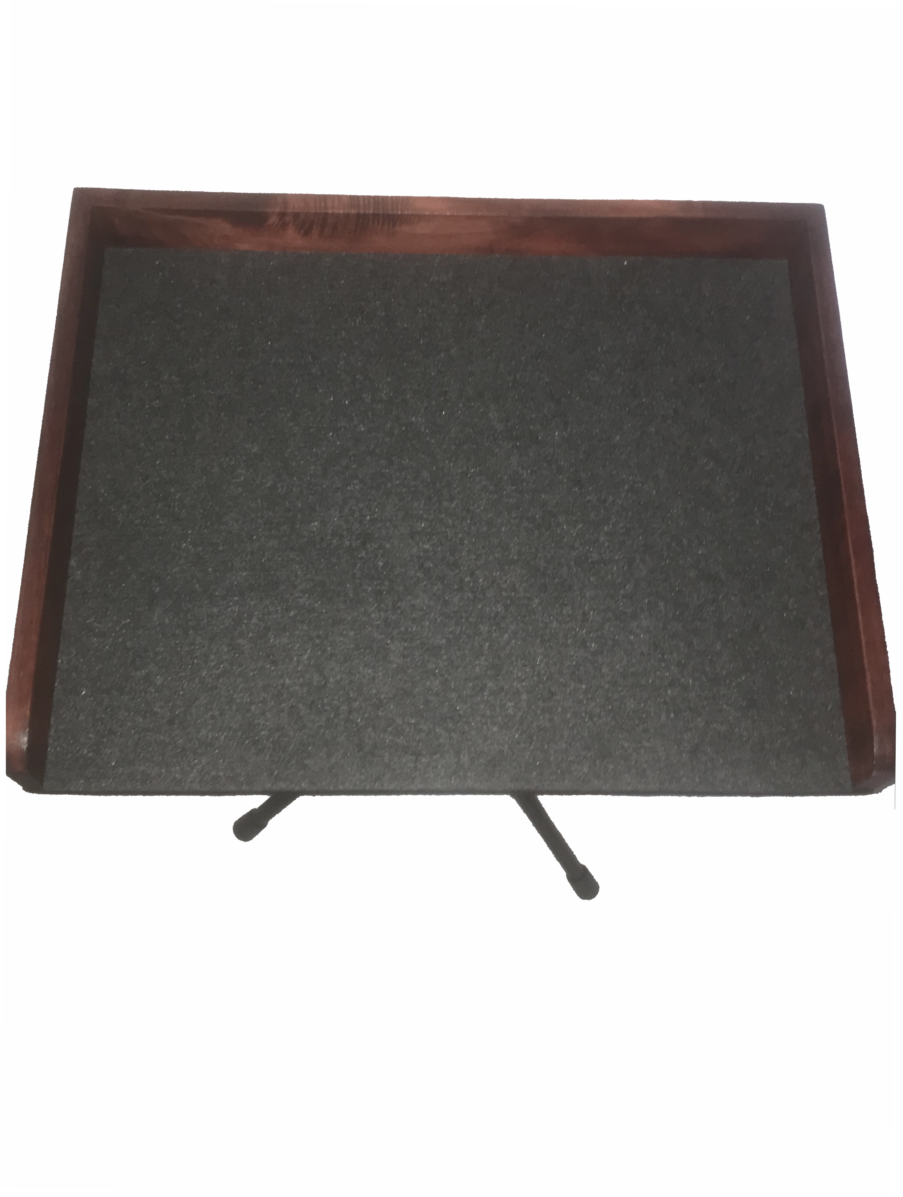 - Drewniany trap wyścielany gąbką zapewnia bezgłośne odkładanie perrkusjonaliów